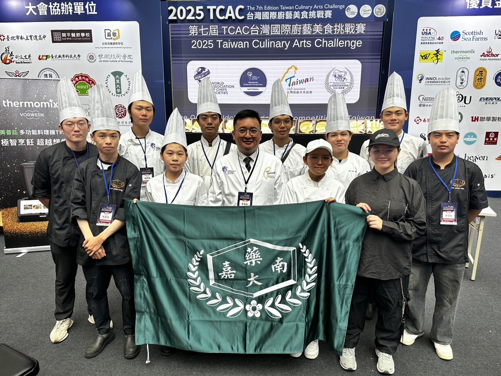 【記者鄭永德台南報導】嘉南藥理大學餐旅管理系今年在TCAC台灣國際廚藝美食挑戰賽及FHM馬來西亞吉隆坡廚藝大賽,兩項國際級廚藝盛會中表現亮眼,共獲得1銀11銅13佳作,可說是滿載而歸,這是餐旅系首次集結中餐、西餐、飲調及烘焙四大團隊聯合出征國際賽事,當中涵蓋多位首次參加國際賽事的選手,更有剛入學新生參加,證明嘉藥在餐飲人才培訓上的全方位實力。