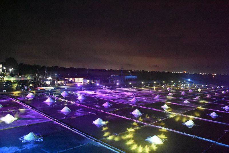 【記者黃永豐台南報導】交通部觀光署雲嘉南濱海國家風景區管理處,所轄北門井仔腳瓦盤鹽田,歷經今年7月颱風「丹娜絲」風災重創後,在中央及地方努力下積極重建復甦,由台灣守護文創團隊營運的「成功鹽門市」已重建啟用,迎來10月一見雙雕藝術季重頭戲「光雕地景藝術展演」。