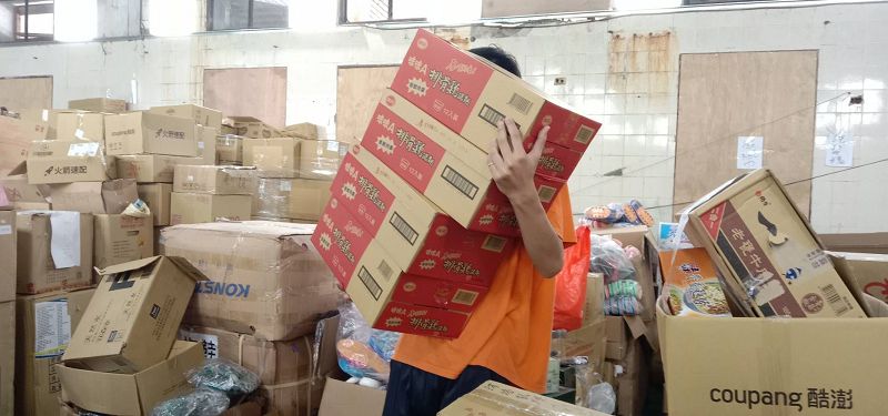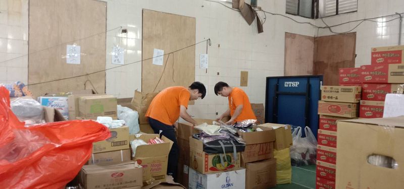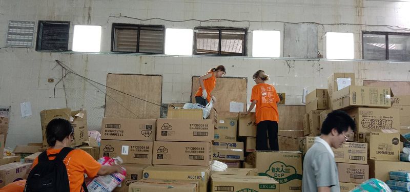 學生們在物資中心的工作繁瑣卻重要。從一袋袋衣物、食品到尿布、嬰幼兒用品,在師生分工合作下被分類,方便有需要的團體快速領取,讓復原工作更順利推展。