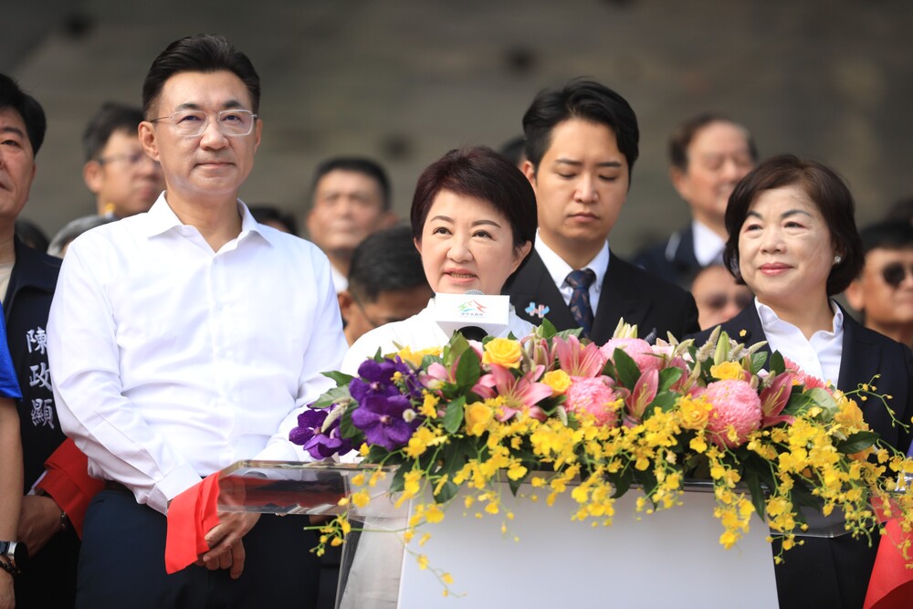 市府升旗包括盧市長、立法院副院長江啟臣、立委楊瓊瓔、羅廷瑋、何欣純、市議員林霈涵、沈佑蓮、邱愛珊、李中、顯、副市長黃國榮、賴淑惠、鄭照新、秘書長黃崇典、民政局長吳世瑋及各局處首長、各區區長、各區戶所主任等均到場共襄盛舉。