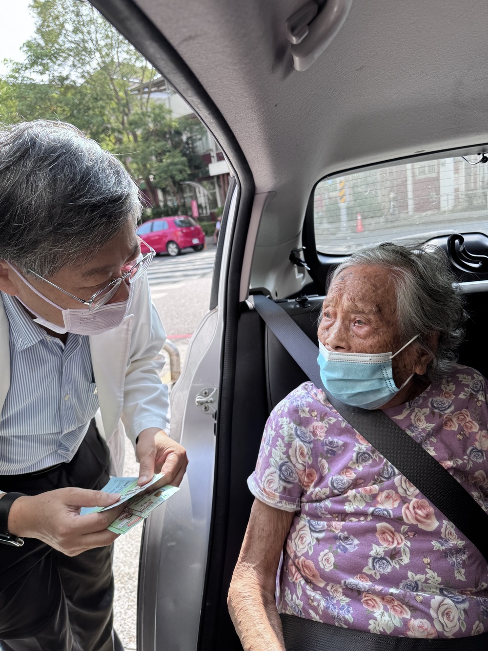 臺南市新市區高齡105歲的人瑞吳鄭敏老太太,在國慶日上午前往新市衛生所接種流感及新冠疫苗。