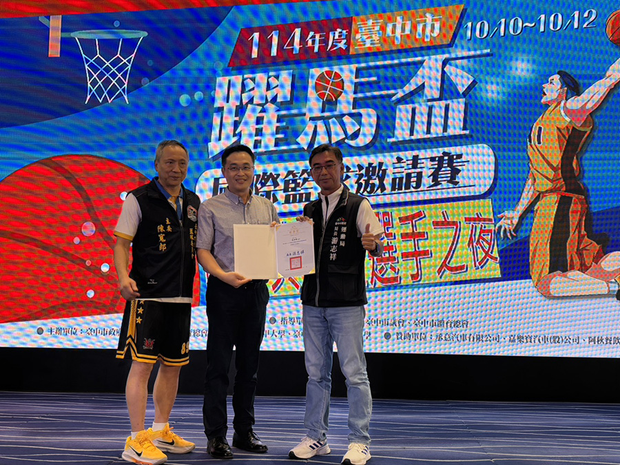 主辦單位台中市體育總會籃球委員會11晚舉辦「選手之夜」,席開115桌、氣氛熱烈。台中市政府運動局長游志祥代表市長盧秀燕出席,感謝籃球委員會多年來持續舉辦高水準賽事,並勉勵選手全力以赴、展現團隊精神,「在籃球場上盡情揮灑汗水,也讓世界看見台中的運動能量!」