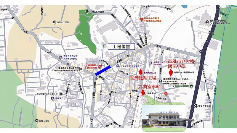 新工處表示,久堂路屬都市計畫道路,計畫寬度15公尺,現況僅約9至11公尺供通行,尚未全寬開闢,造成交通瓶頸與排水不良問題,未來拓寬後,將配置雙向車道及人行道,除解決地方交通瓶頸及長年淹水問題,更肩負提升都市計畫道路服務功能的目標,能帶動大樹區環境品質與地方發展,為居民提供更安全、便捷與宜居的生活環境。