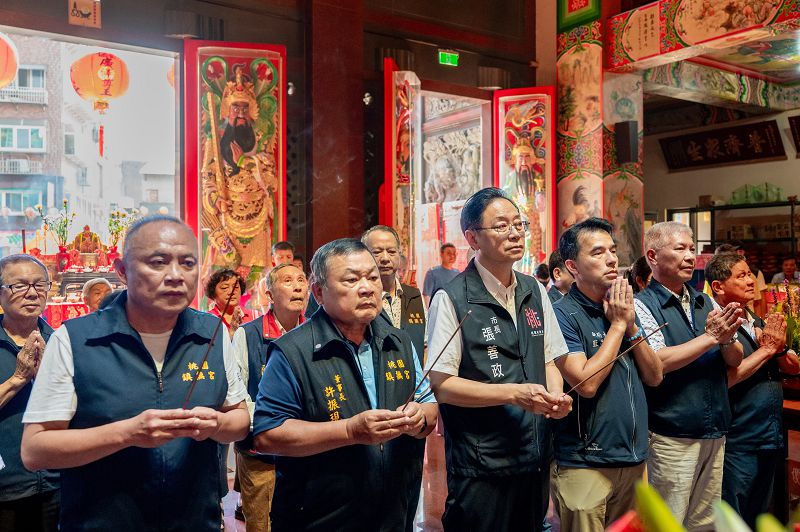 【記者吳惠民桃園報導】桃園市長張善政13日上午在市議會副議長李曉鐘、市議員陳美梅、市府民政局副局長藍品畯、桃園區副區長邱創正、桃園鎮撫宮董事長許振現等,前往桃園鎮撫宮,人陪同出席「2025傳承尊王情妙應心閩南宗教百年文化祭暨保安廣澤尊王得道千秋慶典」。