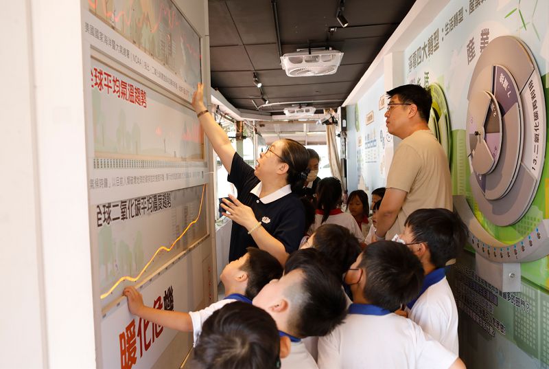 中山國小校長陳學添表示,感謝慈濟將這座環保教育車帶進校園,讓師生有機會深入理解淨零排碳的議題。他特別關注「三生一體」的概念,期望透過生活實踐影響企業生產模式,進而促進生態平衡。他也提到,學校在營養午餐中推動使用在地食材、減少浪費,正是生活中可落實的淨零行動。