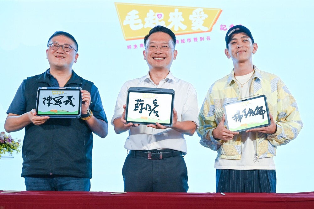 圖2:桃園市副市長蘇俊賓(中)、市府農業局長陳冠義(左)、寵物KOL潮流金童楊艾倫(右)合影。
