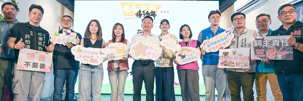 【記者潘瑞如桃園報導】桃園市副市長蘇俊賓日前在立法委員郭昱晴、市議員舒翠玲、張碩芳、市府農業局長陳冠義、動保處長王得吉、桃園區長許敏松及寵物KOL潮流金童楊艾倫等人陪同下,前往桃園區出席「毛起來愛 × 動物保護政策推廣」合作記者會。