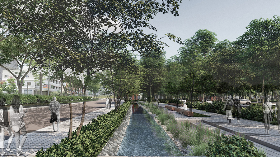 這次工程將以全新設計手法重塑園區形象,並揭露原本埋設於地下的東勢「本圳」水道,沿園區邊界營造圳水流經的淺水道與開放水域,展現地方水文與林業歷史的緊密關聯,打造兼具文化與生態意象的「大雪山旅遊軸帶入口」。