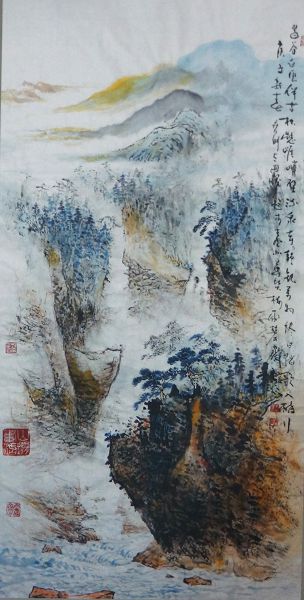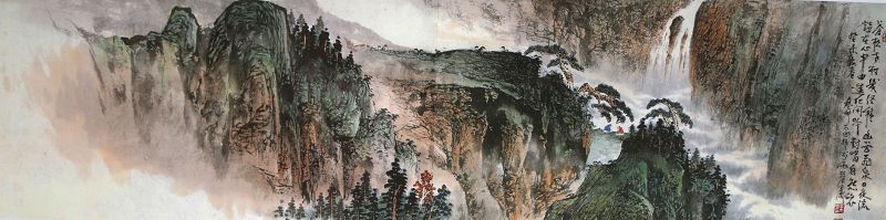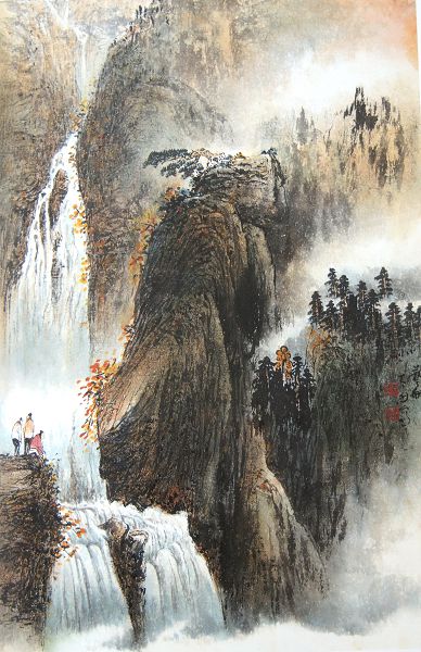 集諸位大師風格並自創飛燕點法 正劍皴法與蠶絲皴法