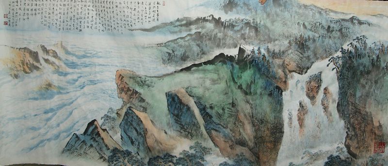 王太田大師70大壽展出之百尺巨幅雄偉山水國畫。