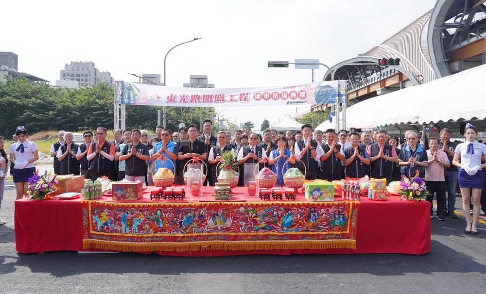 由建設局長陳大田與民政局長吳世瑋代表盧市長共同主持通車祈福典禮,象徵北屯交通建設再邁新里程,將有效改善松竹路與東山路一帶交通,並強化捷運與台鐵松竹車站聯外功能。