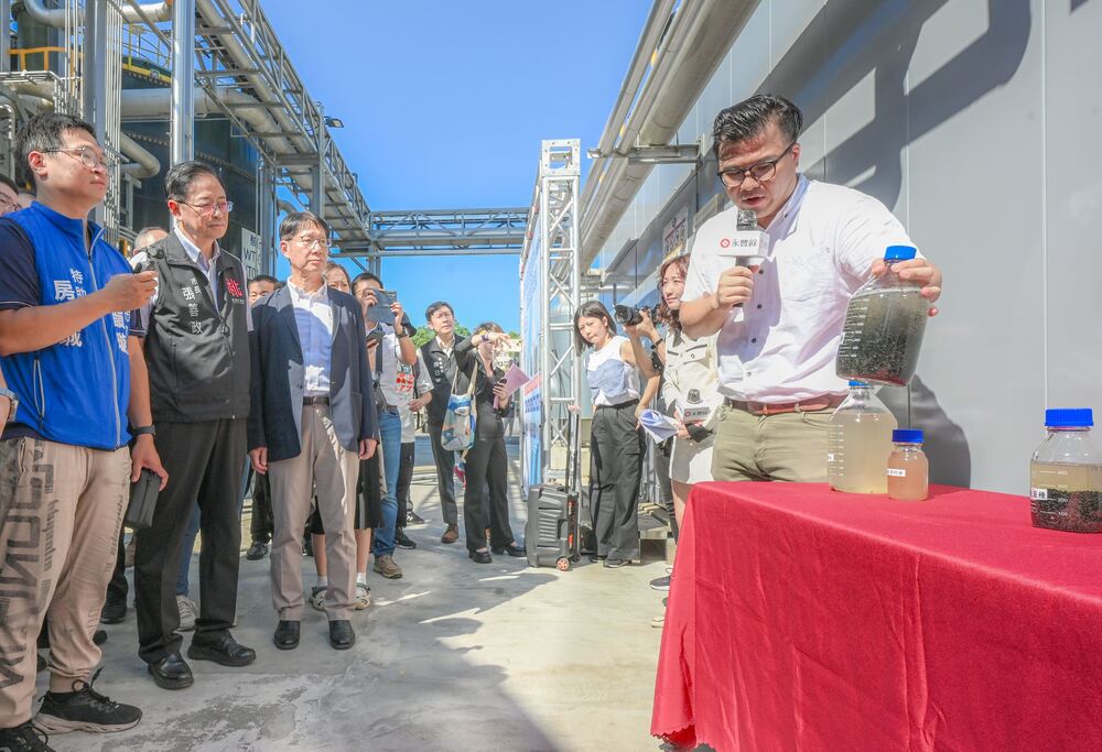 圖2、3:桃園市長張善政與貴賓現場聽取ROT沼氣綠電發電流程。