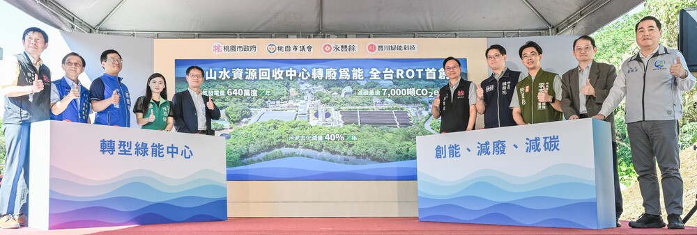 張善政表示,龜山水資源回收中心營運至今已超過30年,透過民間重建營運後移轉模式(ROT)由永豐餘集團旗下「豐川綠能科技」接手,運用最新厭氧菌技術,將污水處理所產生的污泥轉化為沼氣發電,實現污泥減量,此舉不僅使老廠新生,更達到「轉廢為能」的減碳目標,使桃園在淨零碳排的路上更邁進一步。