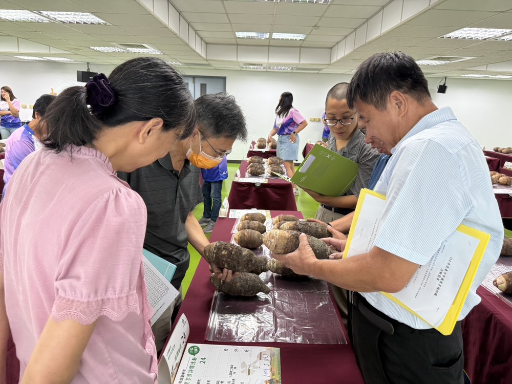 本次評鑑活動邀請農糧署中區分署張文美秘書、臺中區農業改良場蕭政弘副場長、農業部農業試驗所康樂助理研究員、中興大學園藝學系黃三光副教授、及臺中果菜運銷股份有限公司陳又嘉課長等不同領域專家擔任評審委員,評審委員根據芋頭生鮮外觀(整齊度、形狀、縱剖面及病蟲害)及熟芋官能品評(香氣、色澤、質地及口感)項目進行評鑑,經評鑑選出冠軍頒發獎座及獎金25,000元,亞軍2名各頒發獎座及獎金12,000元,季軍3名各頒發獎座及獎金5,000元,優選6名各頒發獎牌及獎金3,000元。