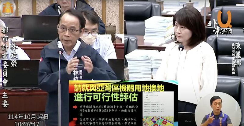 副市長林欽榮答覆,目前205兵工廠地區正進行多功能經貿園區第二階段通盤檢討,會把這項構想納入研究,未來並可研議以機關用地變更為商業區、回饋新機關用地等方式來兼顧公私雙方的需求。
