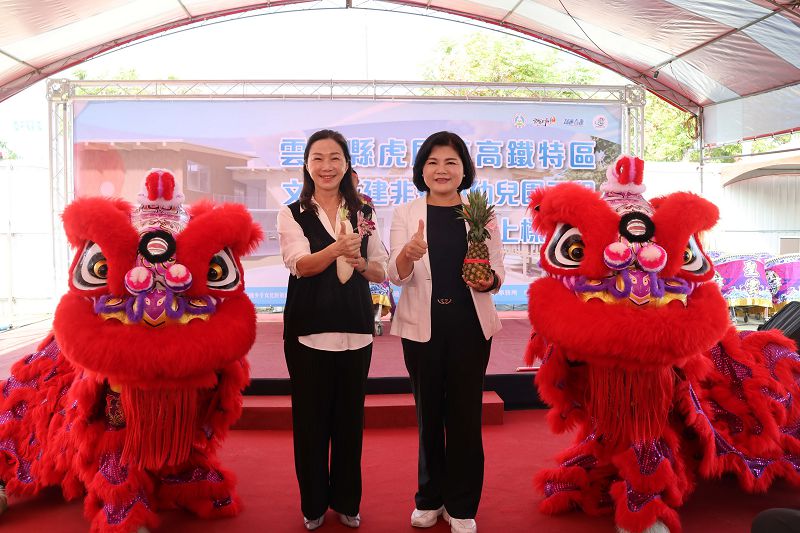 【記者蘇榮泉雲林報導】為減輕年輕世代養育負擔又能安心工作,雲林縣政府去年底於虎尾鎮高鐵特定區內新建縣內第10所非營利幼兒園,目前工程進度已達60%,17日上午舉辦上樑典禮,由縣長張麗善、營運單位維多利亞國民小學附設幼兒園董事長李佳芬繫上紅綾,圓滿完成上梁儀式,象徵建築主體結構完成,工程將邁入最後階段,更代表雲林縣幼兒教育再往前邁一大步。