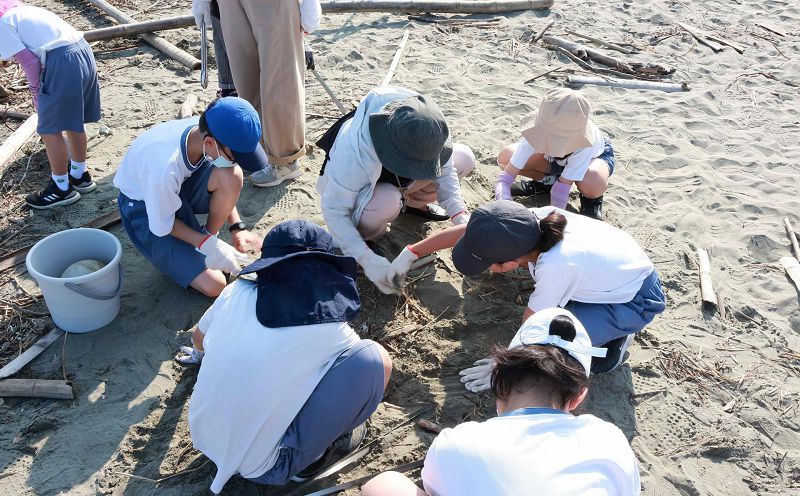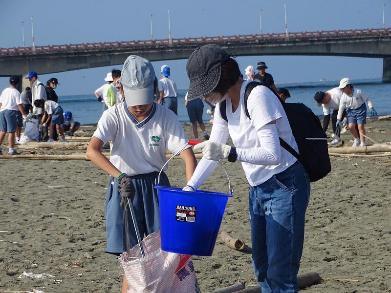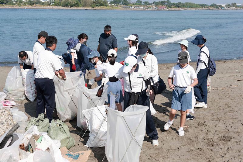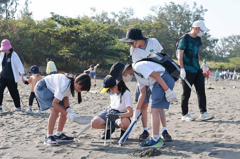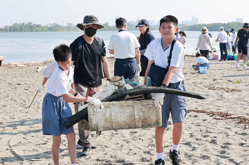 今年夏天接連多個颱風侵襲臺灣,強風豪雨夾帶大量海漂物湧上岸,讓原本潔淨的沙灘佈滿垃圾與破碎的塑膠碎片。許多孩子手中拿著小篩網,細心的在沙灘上過濾塑膠碎片與微小的廢棄物;老師與家長並肩合作,與學生一同拖著沉重破損的大型廢棄物,費力地將這些廢棄物集中搬運至分類區。大家雖然汗流浹背,臉上仍洋溢著笑容,不時互相加油打氣。透過實際行動,學生親身體會到颱風過後海洋生態的脆弱,更明白每個人都有責任減少塑膠使用,守護共同的地球家園。