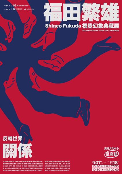 這次展覽由高科大主辦,精選超過百件原版海報與珍稀手稿,分為「一日狂想」與「關係」兩大展區,完整呈現福田如何在生活節奏,與人際張力之間,以錯覺、空間與符號語言,構築出具思想深度的視覺幻象。