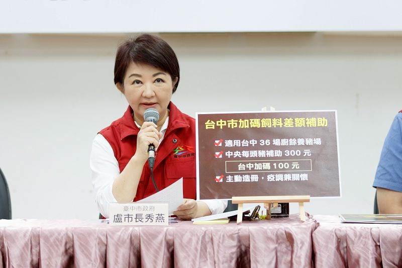 為協助豬場業者及防疫相關產業,台中市政府啟動「四大防疫支持方案」,一、廚餘處理費全免;二、廚餘回收駕駛依運送量給予每車次最高1,500元津貼;三、補助受影響的新鮮豬肉攤商;四、對使用「廚餘再利用畜牧場」,除中央補助每頭豬300元、市府再加碼100元,協助轉型使用飼料。盧市長強調,市府秉持公開透明、快速反應,公私團結合作是很重要的防疫關鍵,持續守住台中、守住台灣。