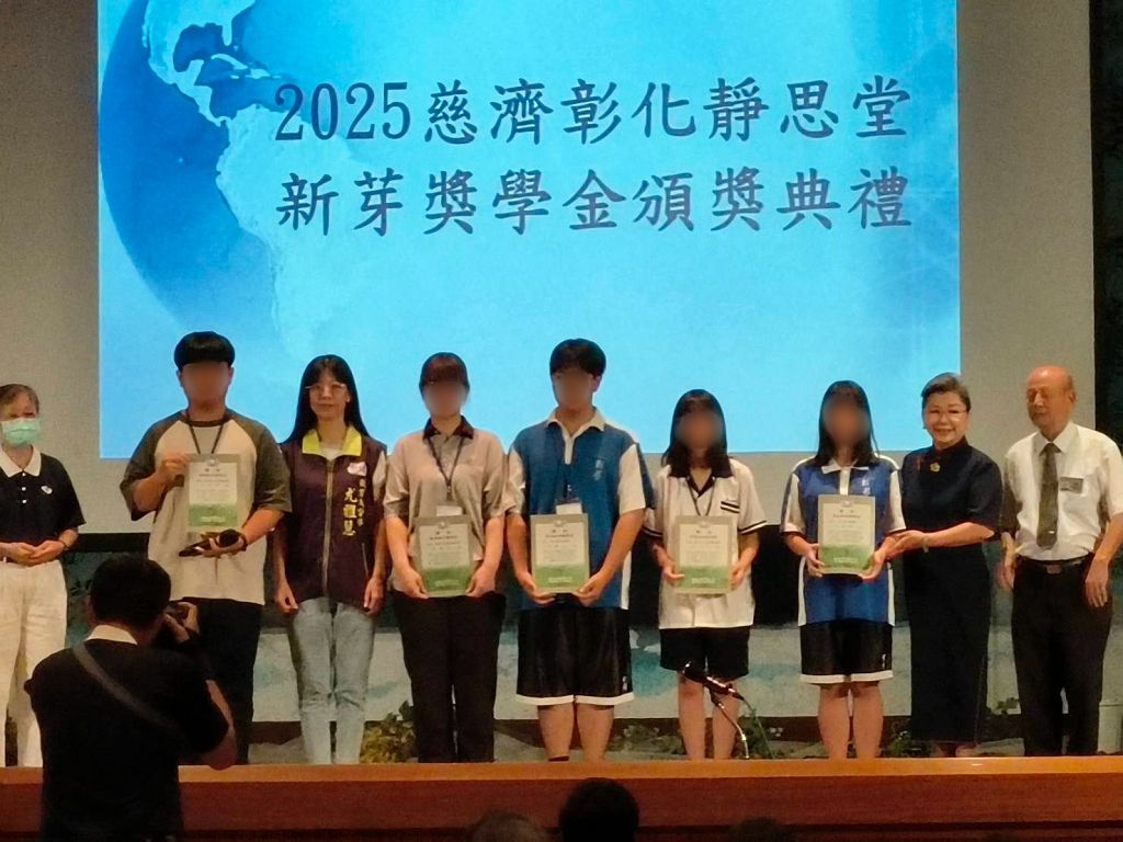 彰化慈濟11月1日在彰化靜思堂舉辦2025年度慈濟新芽獎學金頒獎典禮。分為國小組、國中組、高中組、大專組四個不同階段頒獎,彰化縣本次共有799位學子獲獎,其中國小組259人、國中組168人、高中組193人、大專組179人,分別榮獲「孝悌獎」、「全勤獎」、「特殊表現獎」、「進步獎」及「學習領域獎」等獎項,全面肯定學生在自律、良善與突破上的努力與成果。