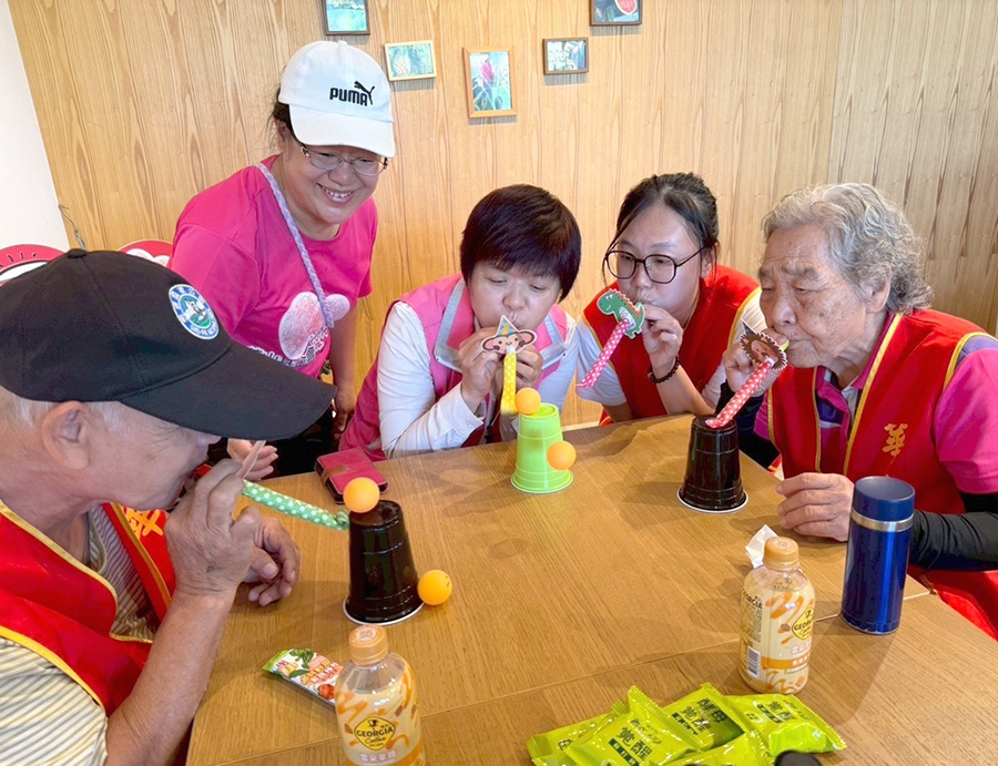 現場還設計「預防失智趣味遊戲」使用紙杯與伸縮象鼻吹管,阿公阿嬤們需將乒乓球從紙杯上吹落,手眼並用、笑聲不斷,不僅增添互動趣味,也幫助活化口腔肌肉、訓練反應力。活動最後,西螺站站長林虹貝特別感謝熱心善士與志工長期的付出,無論在年節關懷送禮、到宅陪訪或公益活動中,總以實際行動支持華山,讓孤老們感受持續不斷的關懷與祝福。