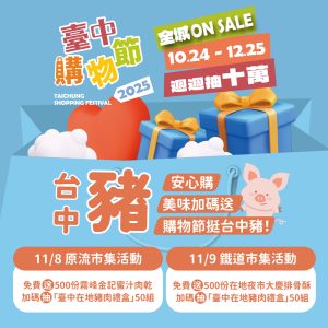 第七屆「2025臺中購物節」啟動會,邀集多家大甲區知名特色店家參與,展示在地優質商品,並推出配合「臺中購物節」的優惠促銷方案,吸引民眾熱烈關注,包括:大甲蔣公路觀光夜市、正兄弟當歸鴨肉麵線、一路發綠豆沙、喫茶小舖大甲蔣公店、大甲區農會社區小舖、大呷麵本家故事館、阿聰師的糕餅主意、紅櫻花食品、裕珍馨、萬全馨等,展現大甲豐富多元的產業能量。