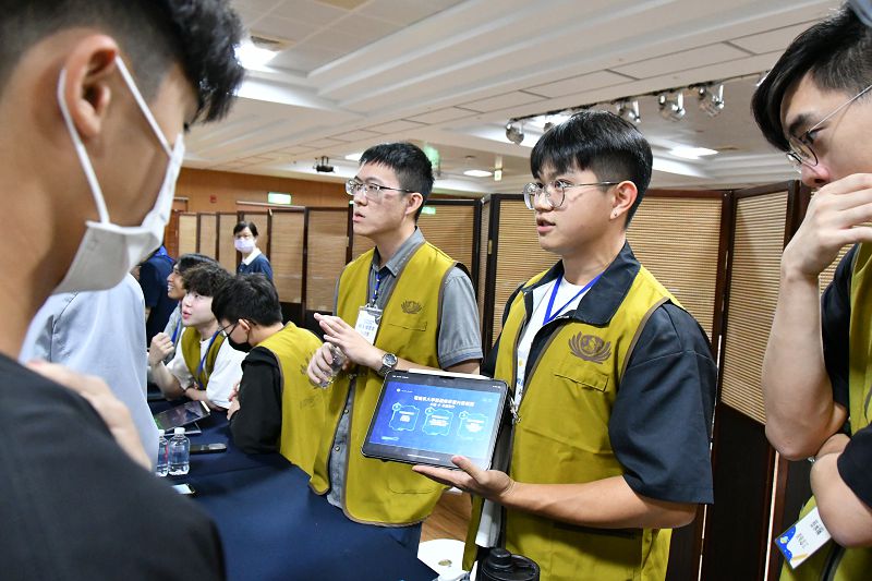 站在工程學群攤位前的臺大電機工程學系林祺惟,打開平板告訴學弟學妹未來電機工程學系的樣貌。他說,「因為若選錯路再重來,會很辛苦。現在的學弟學妹很幸運,有很多資訊可以查,我們身為過來人給予經驗,他們才不會多走冤枉路。」