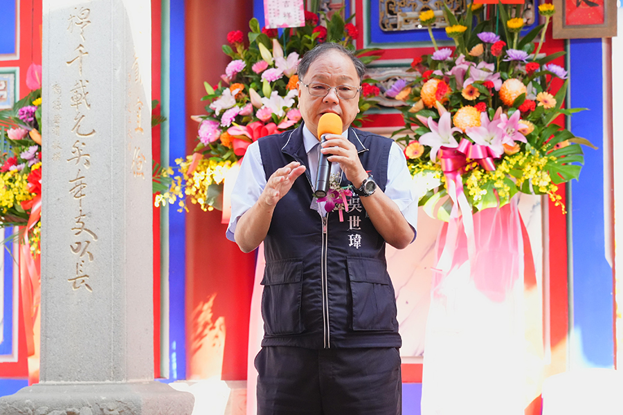 2.台中市政府民政局長吳世瑋致詞表示,張廖家廟見證地方開發與族群融合,是宗族團結與敬祖思親的象徵。
