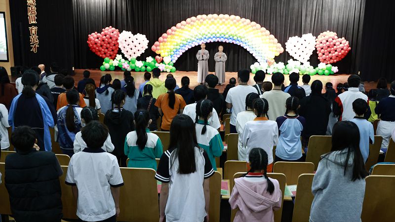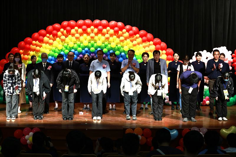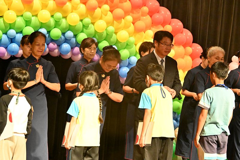 德傑法師上台勉勵學子:我們身邊有許多愛我們的人,在世界各地有許多孩子跟我們一樣面對自己的困難,勇敢地對未來做努力,他們獲得新芽獎學金的肯定。期待這些新芽種子未來也能為社會付出,把心打開、把愛傳承下去。