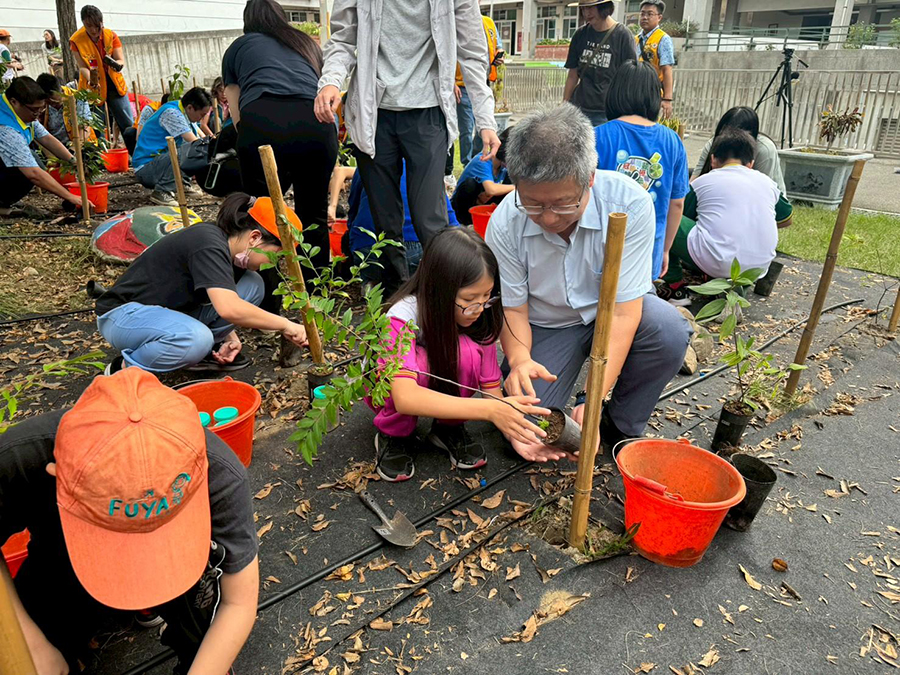 此次活動感謝山林復育協會執行長蔡智豪推動及崴正營造補助,協助進行校園樹木調查與樹島設計,讓學童認識台中淺山及盆地常見原生樹種,學習生態系統的運作與城市韌性的重要。