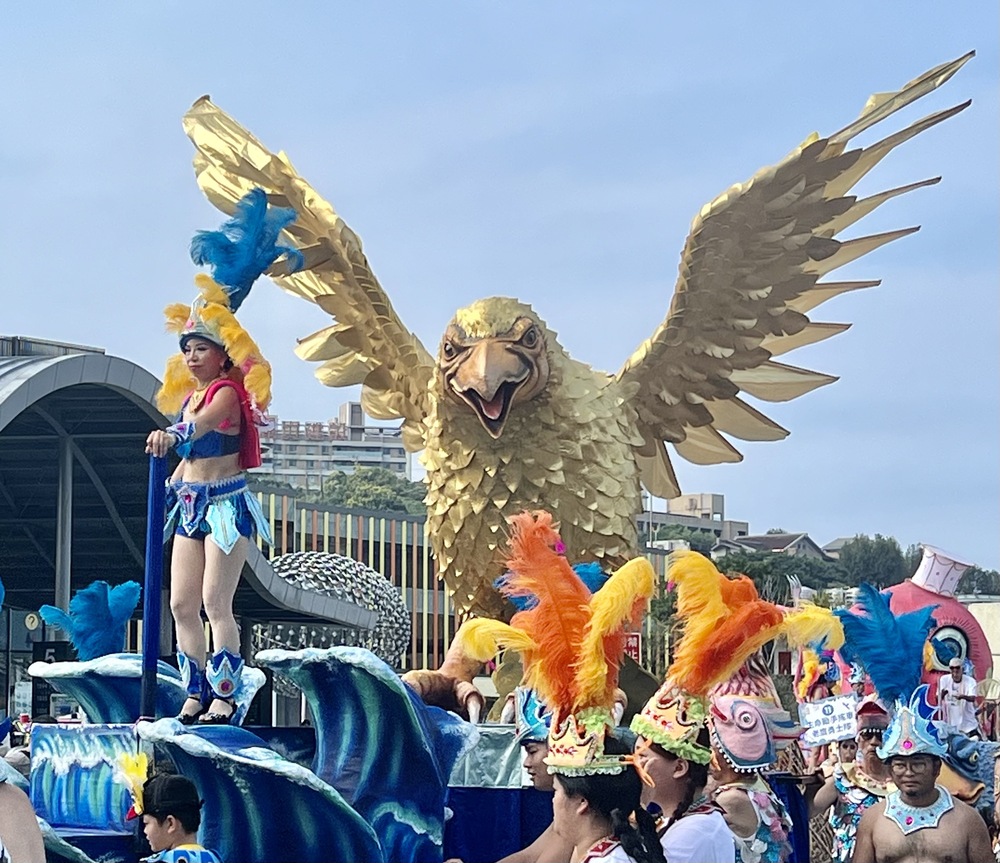 基隆港海洋廣場港面上空,有黑色老鷹盤旋,這種學名叫黑鳶的,已成基隆的市鳥,不僅吸引攝影家來海洋廣場拍攝黑鷹展翅鏡頭,更成為基隆封街「海洋黑鷹化粧遊行的嘉年華會,由「鷹隊長」和金,銀,大小老鷹芻像,深映入們眼簾。