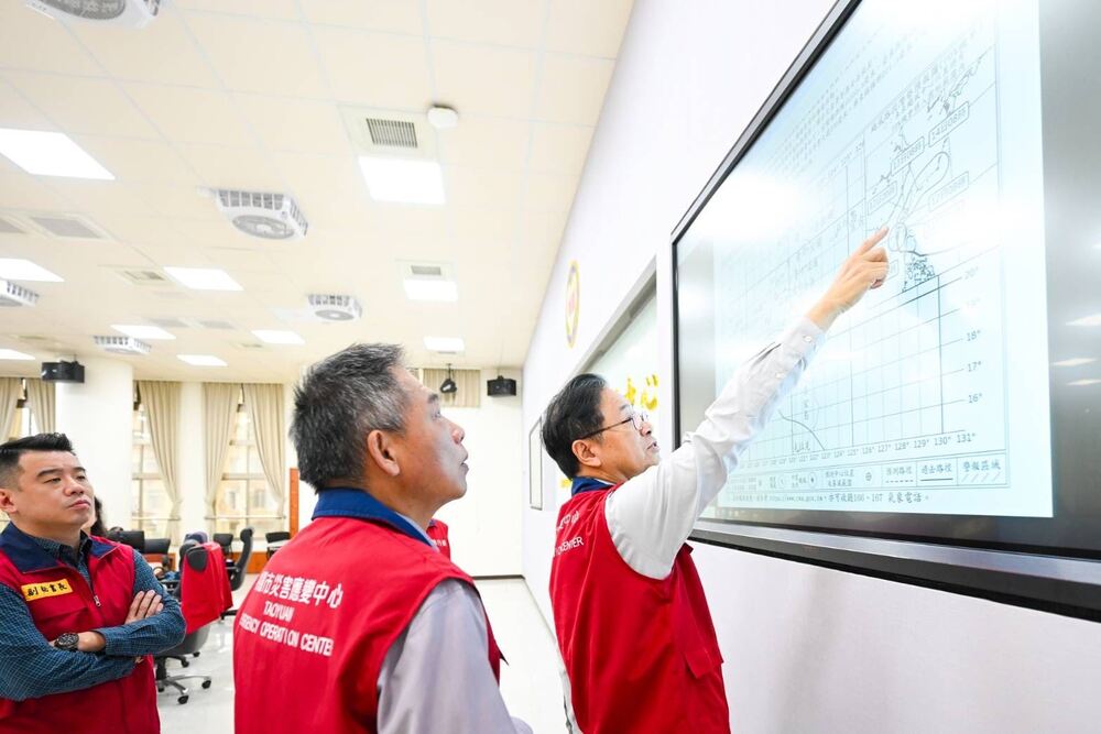 張善政表示,市府災害應變中心二級已開設,將全力最好防災工作,並要求各區公所嚴密監控地勢脆弱地區,特別加強巡查先前崩塌地段及山區道路安全,確保市民平安度過颱風。