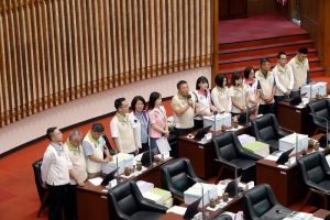 國民黨團強調,為捍衛議事公正與市民權益,黨團議員不惜佔領主席台,表達強烈抗議,並送上「塑膠錘」,呼籲議長不要讓市長把議會當「塑膠」;綠營議員見狀,也隨即衝上前對抗,雙方引發肢體衝突。