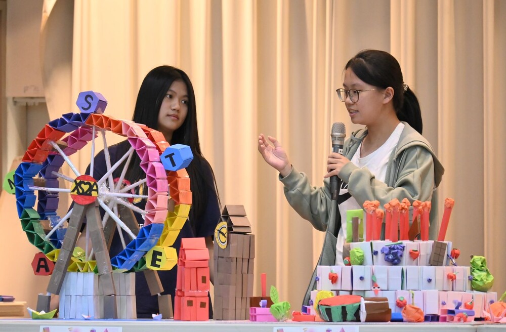 文藻外大通識教育中心指出,這場競賽是以「五專數學(二)」課程為基礎,結合教學與實作,吸引約200名師生參與,並以全球知名3D建構遊戲《Minecraft》為發想,學生先以電腦軟體進行空間建模,再以摺紙技巧製作方塊與幾何構件,組合出創意建築或主題場景。賽程更採限時實作,並於現場發表,由評審依創意、構想、技巧與團隊協作等面向評分。