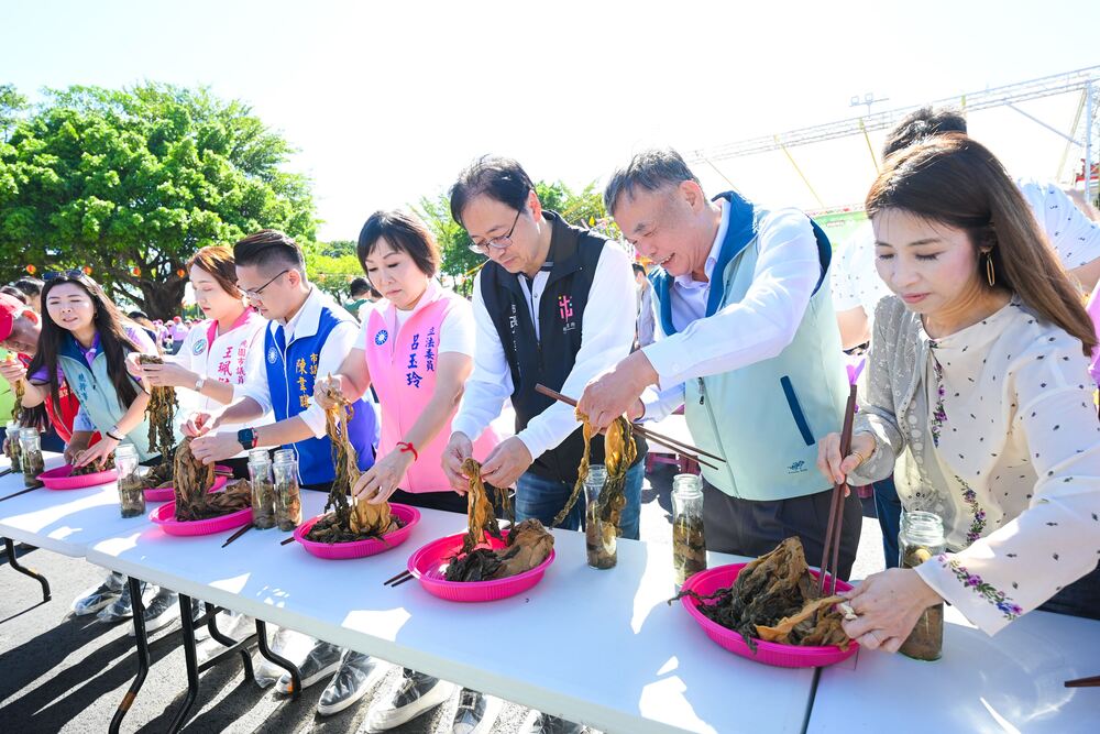 張善政表示,「千人踩酸菜」是平鎮區農會最具代表性的年度盛事,酸菜充分展現地方獨特的客家飲食文化,市府將持續支持在地特色產業發展,讓客家風味與在地農業相得益彰。