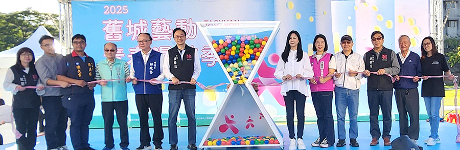 【記者鍾陽正桃園報導】桃園市政府文化局為推動「老城再生」計畫,於15、16日在桃園舊城區舉辦「2025舊城藝動·青春漫遊季」,由市長張善政與文化局長邱正生、立法委員萬美玲、市議員林政賢、張碩芳、婦幼局長杜慈容、都發局長江南志、桃園區長許敏松、大廟景福宮副主委蘇家明、總幹事李詩明等人共同進行開幕儀式,與市民朋友一起見證舊城的嶄新篇章。