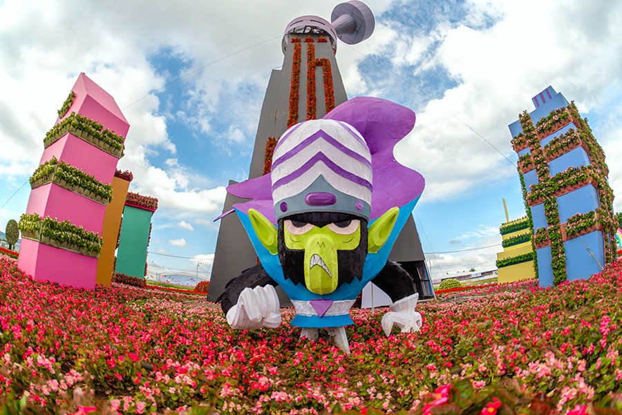 台中市觀旅局指出,今年花毯節主題結合知名卡通飛天小女警,以史上最大規模的主花毯(高18米、直徑60米)為核心,每日上演泡泡與水霧特效搭配機械動態自動展演,持續吸引大批遊客駐足拍照。花毯內更設置盪鞦韆、甜甜圈店等場景,讓大小朋友都能參與其中。