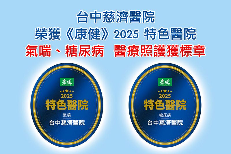 台中慈濟醫院獲選《康健》2025評選「氣喘」與「糖尿病」特色醫院。