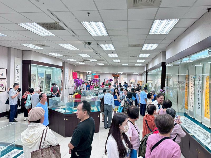 【記者吳惠民、鍾陽正桃園報導】當代傑出藝術家鄭添煌、楊松烽、蕭慧如以「妙出偶然三人展」為主題,聯袂於11/2日至30日在桃園平鎮圖書分館一樓文化館舉辦書法、水墨畫、彩墨畫手繪陶瓷等3百餘件創作精品聯展,並於日前舉行開幕茶會,邀請熱愛藝術的群賢畢至,熱鬧非凡,亦有榮欣書畫協會高齡105歲前理事張豁睿、僑愛佛教講堂住持釋天蓮法師、榮光藝文學會創會會長史新年、桃園市書法學會理事長陳綠文、台藝書畫學會理事長葉蘭香、桃園市書法教育學會理事長廖富景、桃園市書法學會理事長黃傳恩等人親臨現場致詞,為展覽增添光彩。逸仙書畫學會理事長鄭進練、榮欣書畫協會榮譽理事長榮紹華、台灣導報副社長吳惠民、桃園八德藝文協會理事長陳再旺、桃園市書法學會榮譽理事長黃慶章、宸康建設董事長林奎一、彩墨藝術家朱珍霖、書法家盧瑞旦等多位藝術家均共襄盛舉,讓會場格外藝氣飛揚,堪稱是場視覺與心靈的雙重饗宴。
