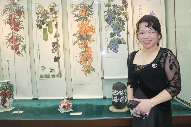 蕭慧如表示,非常感謝藝文界的前輩同好、師長、親朋好友、老同事、老同學的蒞臨,讓慧如與楊松烽老師、鄭添煌老師的三人聯展更添光彩,有大家的祝福我會更加努力。此次展覽鄭添煌老師的書法小品多元且饒富趣味,而般若波羅蜜多心經三種不同書體呈現的書法作品更令人稱羨。楊松烽老師創作題材大多取材於生活周遭景物,繪畫的功力深受喜愛是最傑出的水墨畫藝術家,魅力無窮,令人敬佩。而我展出作品有「瓷刻小花瓶~五福」,以文字演變歷程所呈現的五個福字,還有「瓷盤~春風化雨」,刻寫這四個字,送給一群無私奉獻的教育人,希望能夠藉由書畫與篆刻分享自在漫活的人生哲學。