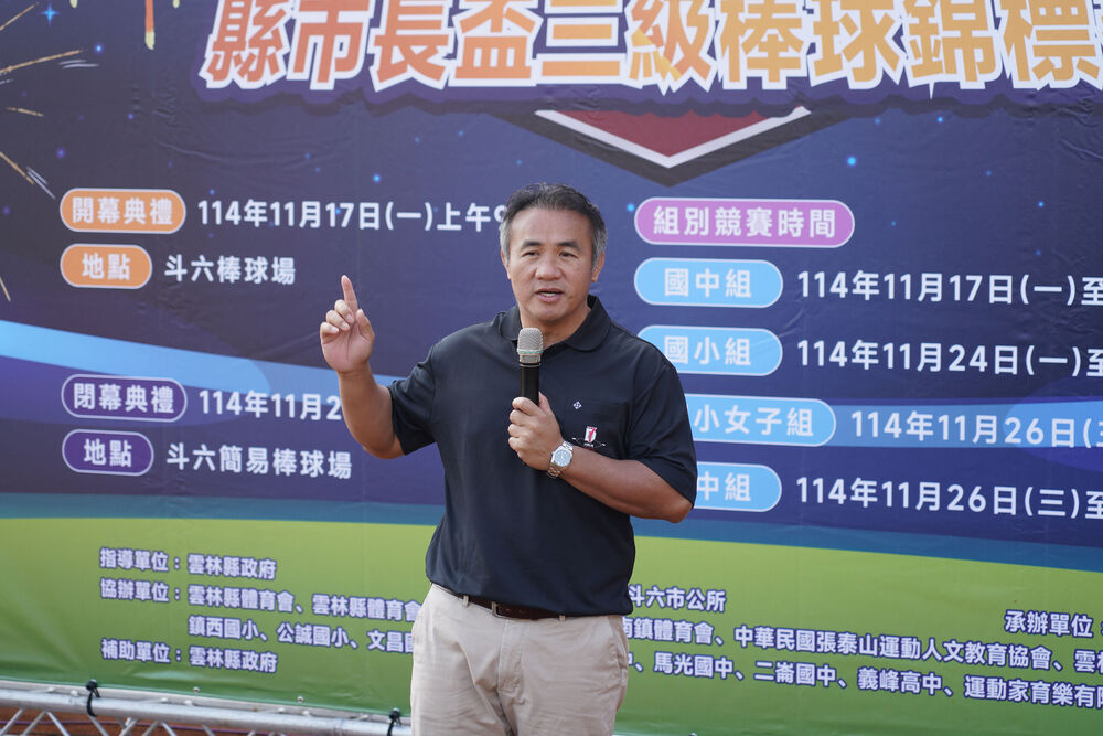 林聖爵市長於開幕典禮表示:「大谷翔平吹起了全世界的棒球旋風,燃起大家的棒球魂。縣市長盃三級棒球錦標賽已堂堂邁入第五屆,期望透過比賽實戰經驗的累積,讓年輕選手在棒球之路更進一步,跟大谷翔平一樣勇敢追逐夢想。今年同樣感謝張麗善縣長率領的縣府團隊鼎力支持,以及斗六市民代表會的大力協助,歡迎全國熱愛棒球的朋友們一起來體驗斗六在地的熱情!」