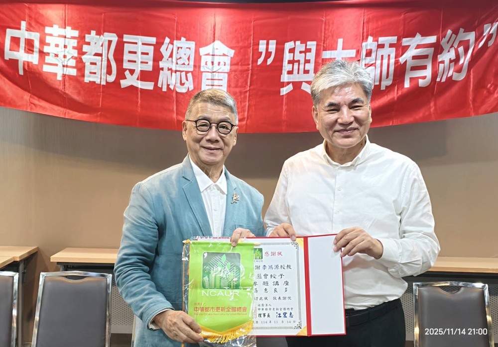 講座由中華都市更新全國總會理事長江宏志主持,他表示,台灣正面臨氣候變遷、老舊建築危險、都市更新與國土規劃刻不容緩;而李鴻源教授不僅曾擔任內政部長,更長期投入公共政策與災害治理研究,是國內最具影響力的專家之一,特別邀他分享觀點,對政府、業界與學界都具有重要啟發。