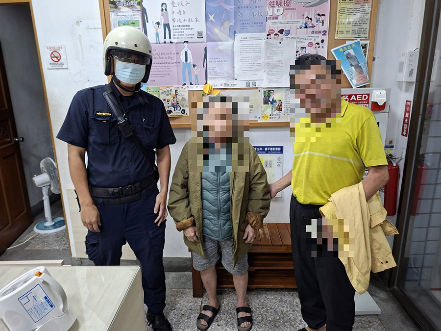 【記者楊川欽台中報導】日前下午4時53分許,清水警分局明秀派出所副所長甘致宇、警員黃國展獲報於沙鹿區正英路有1名迷失老人徘徊,疑似找不到回家的路,二名員警立即趕赴現場,發現該名周姓老婦(33年次)無法清楚說出姓名及年藉,僅表示「要出門走走,但出門後感覺地方很陌生,想要回家卻找不到路」,由於當時海線氣溫驟降並有間歇性降雨,婦人僅穿短袖及短褲,身體微微顫抖,警方見老婦衣著單薄,雙手冰冷,擔心淋雨受寒,員警表示「我們幫你找回家路」,趕緊先將婦人載返派出所休息,並提供熱水與暖暖包協助取暖,最後警方比對系統後確認其身分,即通知其兒子陳姓男子報平安,她的兒子隨即趕往派出所,順利將母親接回家。