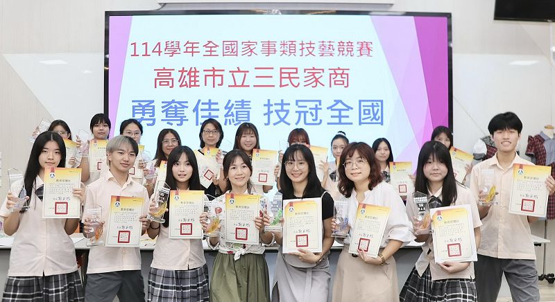 【記者吳峙嵩高雄報導】「114學年度全國高級中等學校學生家事類技藝競賽」,高市三民家商再次展現精湛的專業技能,總計贏得4冠軍、5金手、6優勝、4座團體獎,並奪下多個項目的團體獎項,成績傲人。