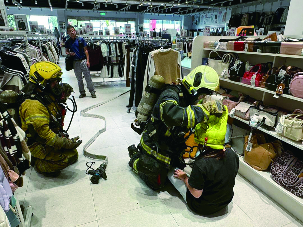 由於大型鐵皮屋賣場內部陳列大量衣物與商品等可燃物,一旦發生火災,火勢蔓延及濃煙竄流迅速,對於人員疏散與消防救災均構成艱難挑戰,本次演練情境,係模擬賣場於營業期間因電器因素引發火警,店內員工立即啟動自衛消防編組,進行初期滅火、廣播通報與引導顧客疏散等作業,過程中一名員工因吸入濃煙,造成昏迷、受困等待救援。