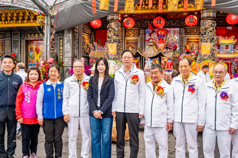 【記者鍾陽正桃園報導】桃園慈護宮依科儀於11月18日至22日舉辦「乙巳年酬恩五朝圓醮慶典」系列活動五日,並於18日上午進行「圓醮起功」儀式。市長張善政在立委萬美玲、市議員陳美梅、民政局副局長藍品俊、桃園區長許敏松、八德區長蔡豊展、龜山區長張嘉平的陪同下,抵達慈護宮廟埕,受到主任委員簡征潭、榮譽主委吳正宗、副主委蘇家明(桃園信用合作社主席)、建醮主任委員林建龍、建醮委員暨許多信眾熱烈歡迎,並於起功祭典儀式結束後合影留念。