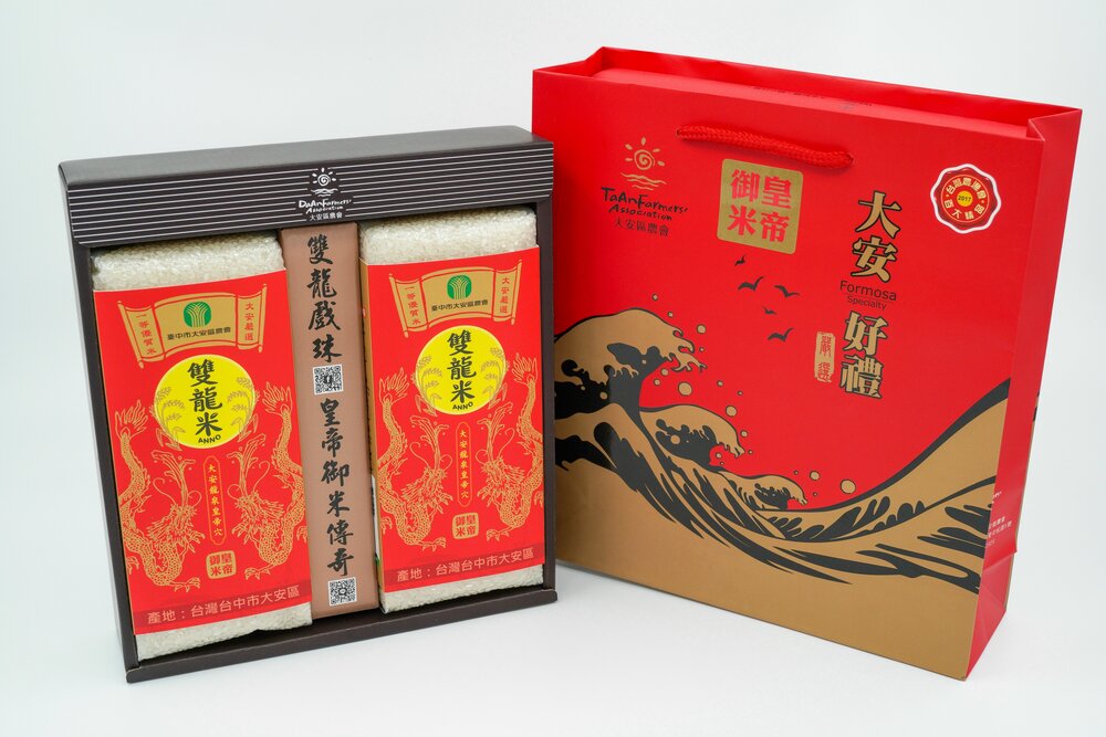大安地區因雙龍匯流、水質清澈,被視為天然「龍泉」。農會早年將在地稻米命名為「安泉米」,在蔡總幹事用心整合歷史脈絡,逐一探查破地理遺跡、把最高級有機米,導入契作及產銷履歷制度後,正式以「雙龍米」重新上市,多年來終獲得市場熱烈迴響,銷量更居大安地區之冠。