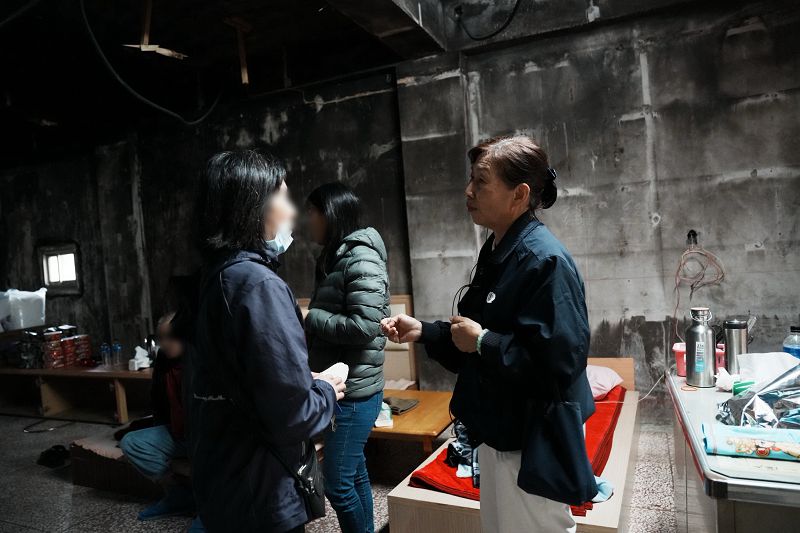 康先生與家人去年剛從海外來到宜蘭定居,去年遇到颱風、這次水淹到二樓地板,感到很無奈。宜蘭慈濟志工11月20日帶著祝福禮來到康先生家。康太太想到後續復原工作忍不住落淚,志工給予擁抱,並獻上祝福禮、耐心安慰。志工說明祝福禮有包含打開就能吃的福慧珍粥、素鬆、蘇打餅,以及可沖泡即食的香積飯、香積麵、湯品、豆漿粉,康太太表示這份禮物很即時需要,因為家裡廚具泡水也無法開伙。