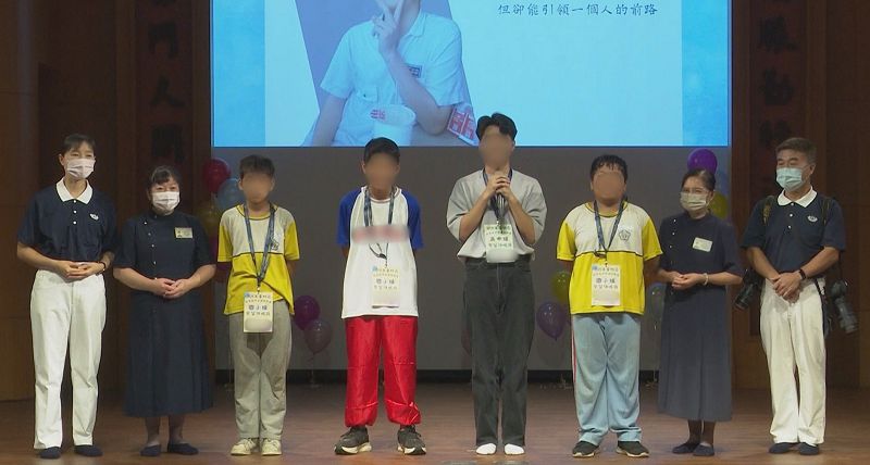 阿賢上台感謝奶奶給予母愛及全力支持,感謝慈濟志工蔡宜達、黃玉枝、吳婕盈等人的陪伴與幫助,讓他在生活與學業上都能穩定前行,有慈濟當後盾,讓他有機會展現自我。