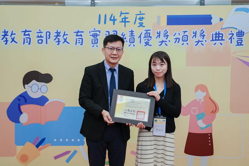 為展現我國師資培育的深厚成果與教育現場持續精進的精神,教育部於114年11月7日舉辦「教育實習績優獎頒獎典禮」,由張廖萬堅次長親自頒獎。今年適逢獎項設立二十週年,典禮不僅表揚指導教授與輔導教師的長年付出,也肯定兼具熱情與潛力、為教育注入新能量的實習學生。該獎項象徵教育薪火的世代傳承,亦見證師生在教學歷程中互相啟發、共同成長的教育精神。